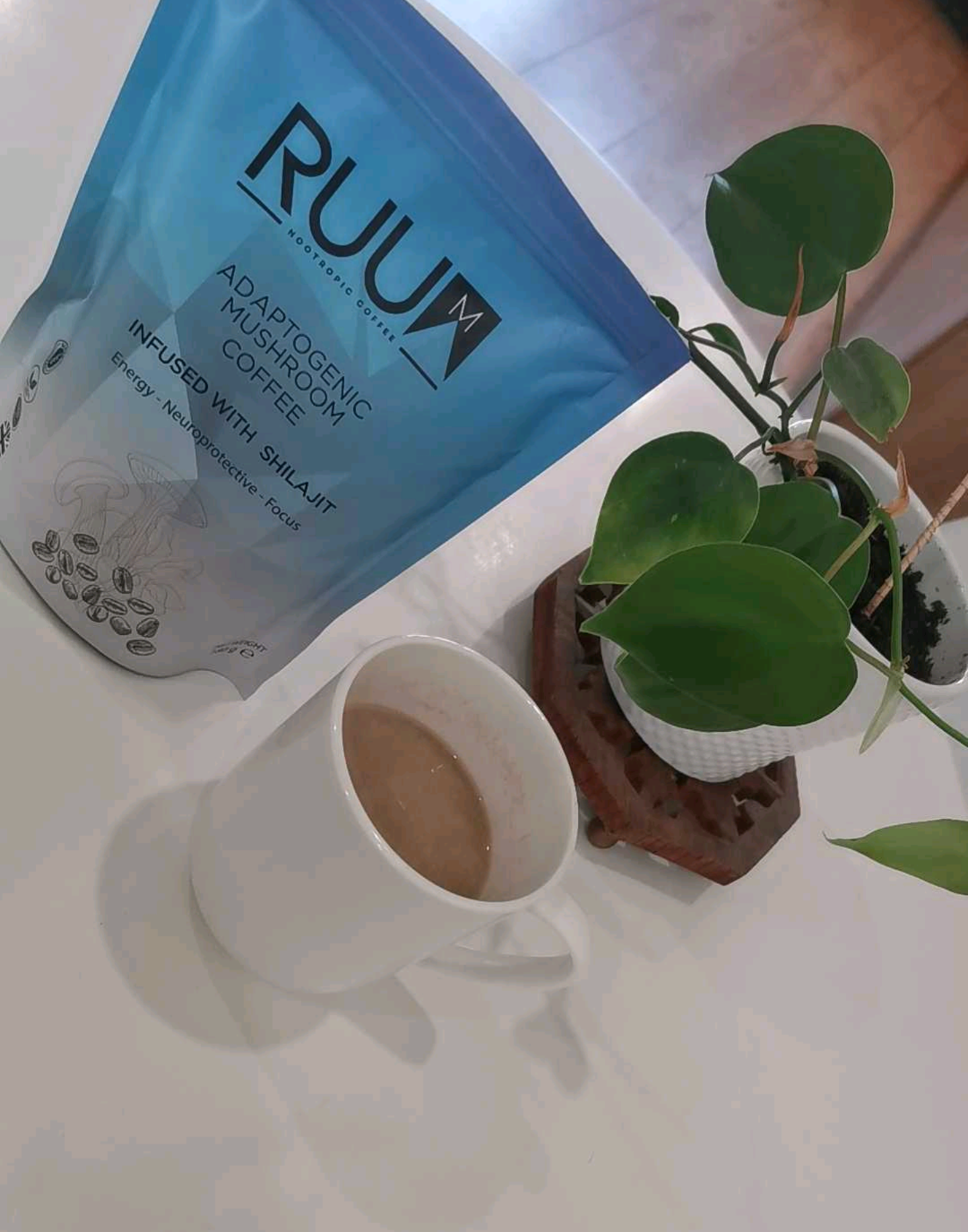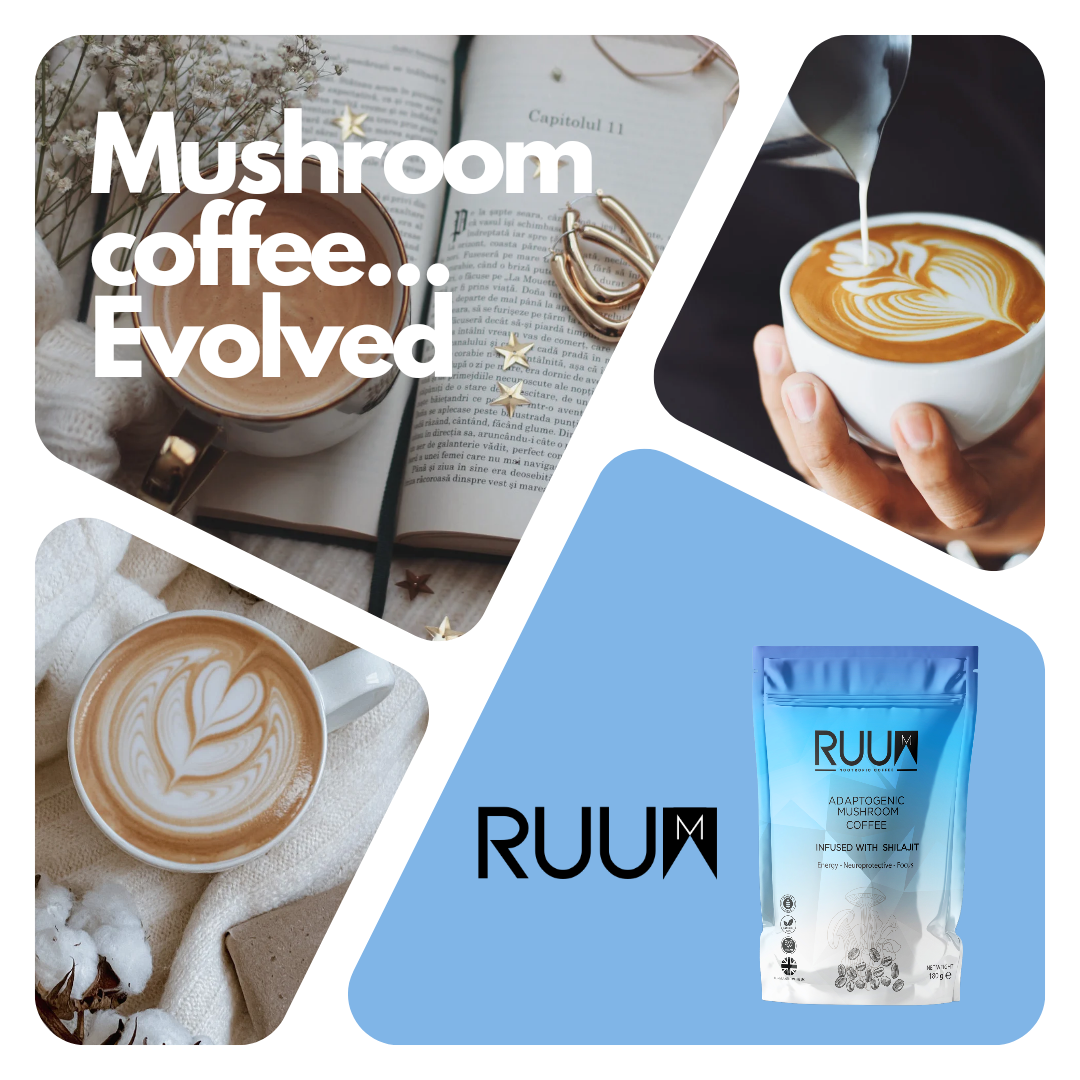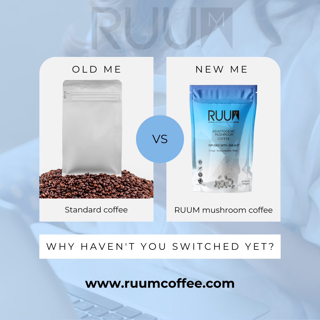 RUUM contains 75% less caffeine than standard coffee and is packed with adaptogenic ingredients to give you sustained energy throughout the day