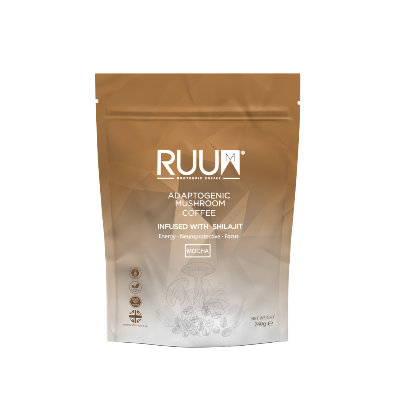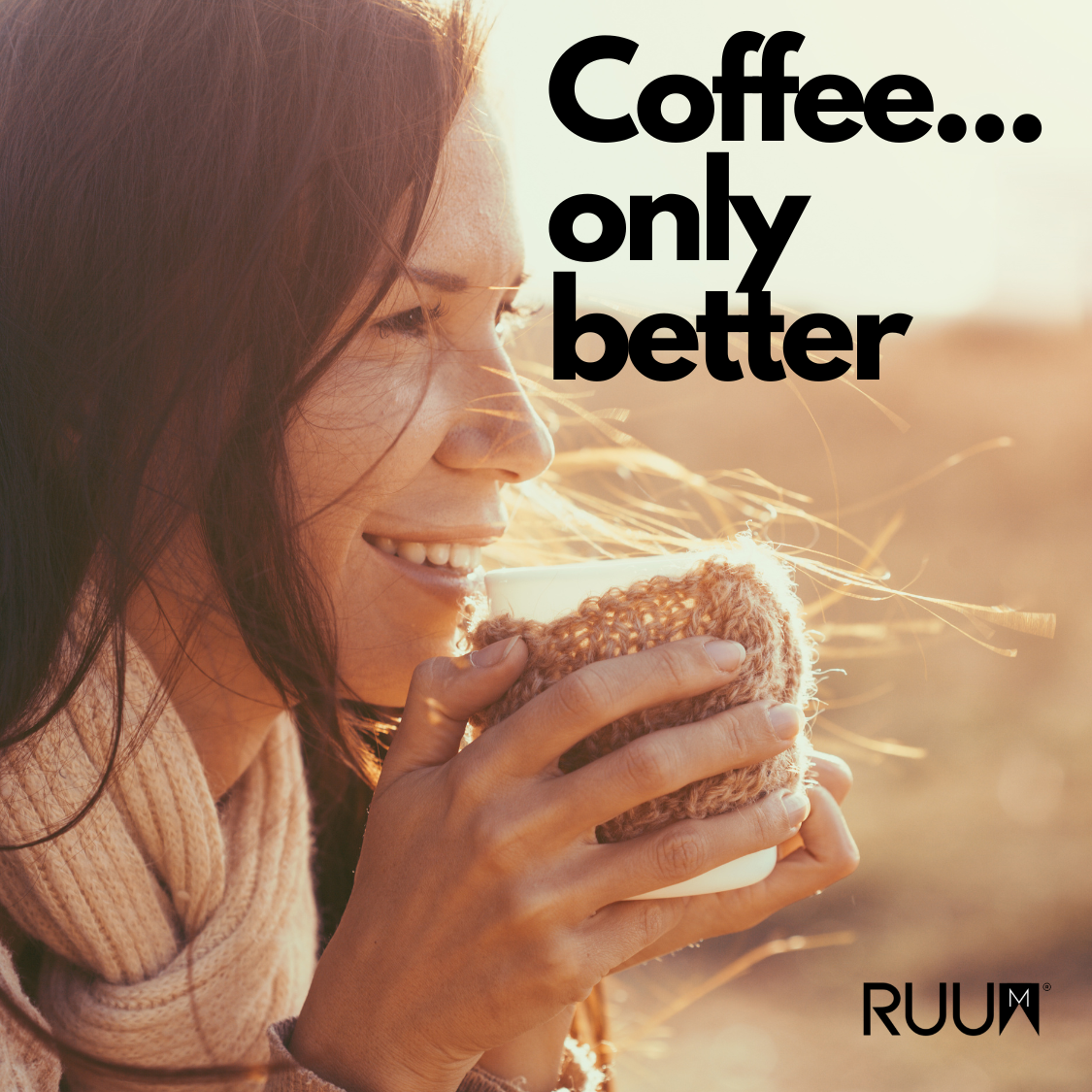 RUUM contains on average around 75% less caffeine than standard coffee. Our blend contains just 23.5mg of caffeine per serving, which gives you just enough caffeine to get the initial boost, but then the magic of our other ingredients takes over meaning you don't get the harsh crash of the caffeine wearing off. We us the finest Aribica coffee to give you best in flavour.
